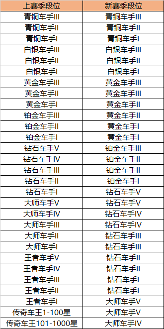 3) 新赛季开启后,S2赛季的段位继承转化关系如下,请各位玩家知悉。