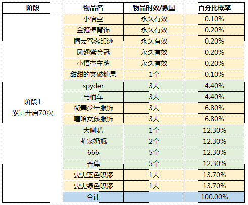 为了给大家带来更好的游戏体验,现将游戏内各类活动以及道具中的核心奖励获得概率进行公示,具体如下: