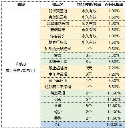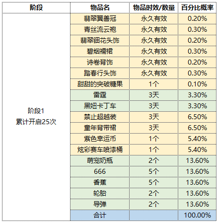 为了给大家带来更好的游戏体验,现将游戏内各类活动以及道具中的核心奖励获得概率进行公示,具体如下: