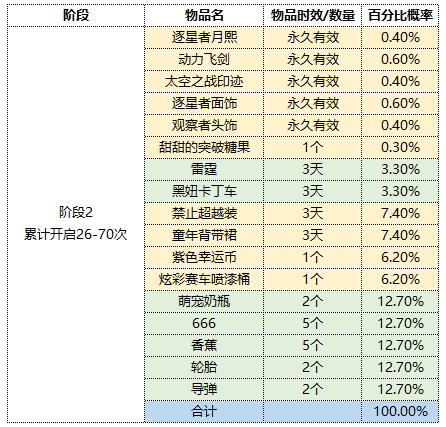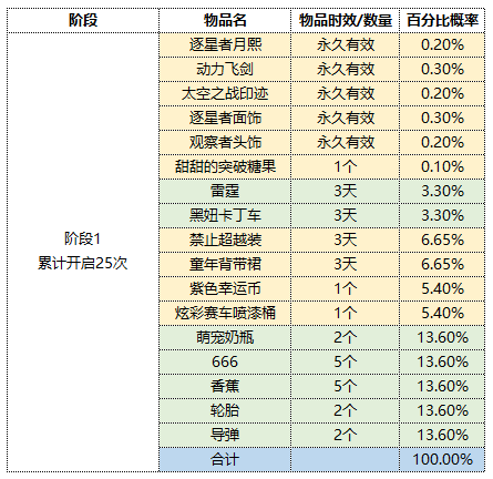 为了给大家带来更好的游戏体验,现将游戏内各类活动以及道具中的核心奖励获得概率进行公示,具体如下: