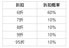 4.刷新出“魔盗师日影”时,各折扣的刷新概率如下:
