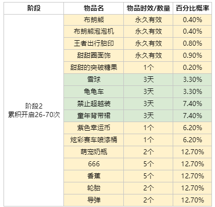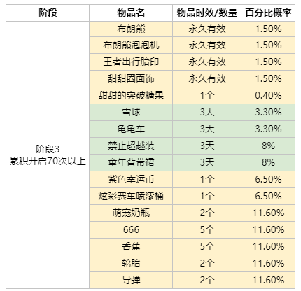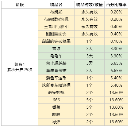 为了给大家带来更好的游戏体验,现将游戏内各类活动以及道具中的核心奖励获得概率进行公示,具体如下: