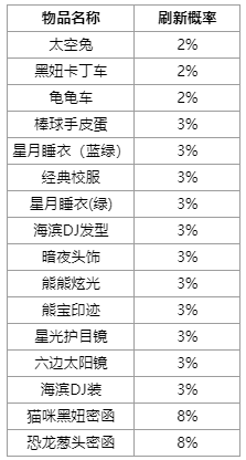 5.本期时光典藏馆核心奖励的刷新概率如下所示: