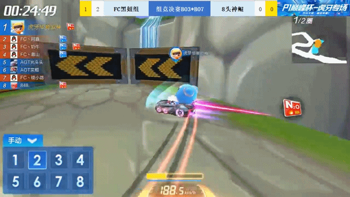 8位顶级竞速大神齐聚一堂,在比赛中, 阿鑫、奶牛、光头头互不相让,在比赛前半段竞争的相当激烈。