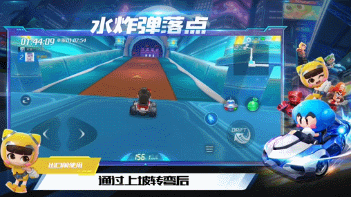 虽然上坡会让对手降低一定的车速,但是这个隧道较为狭窄,对手几乎很难躲避,攻击成功率还是相当不错哒!再加上隧道出口处的位置在小地图上可以很清楚地观察到,所以释放水炸弹的时机也是很好把握的哟!