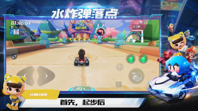 首先,第一处水点位置在起步后的第一个转弯处,车友们在转弯时立刻使用水炸弹,可以攻击到前方洞口处的对手。
