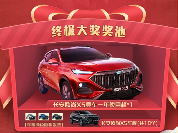 车友使用欧尚X5完成手游的每日活跃任务,还有机会赢取欧尚X5真车一年使用权的超级大奖喔!