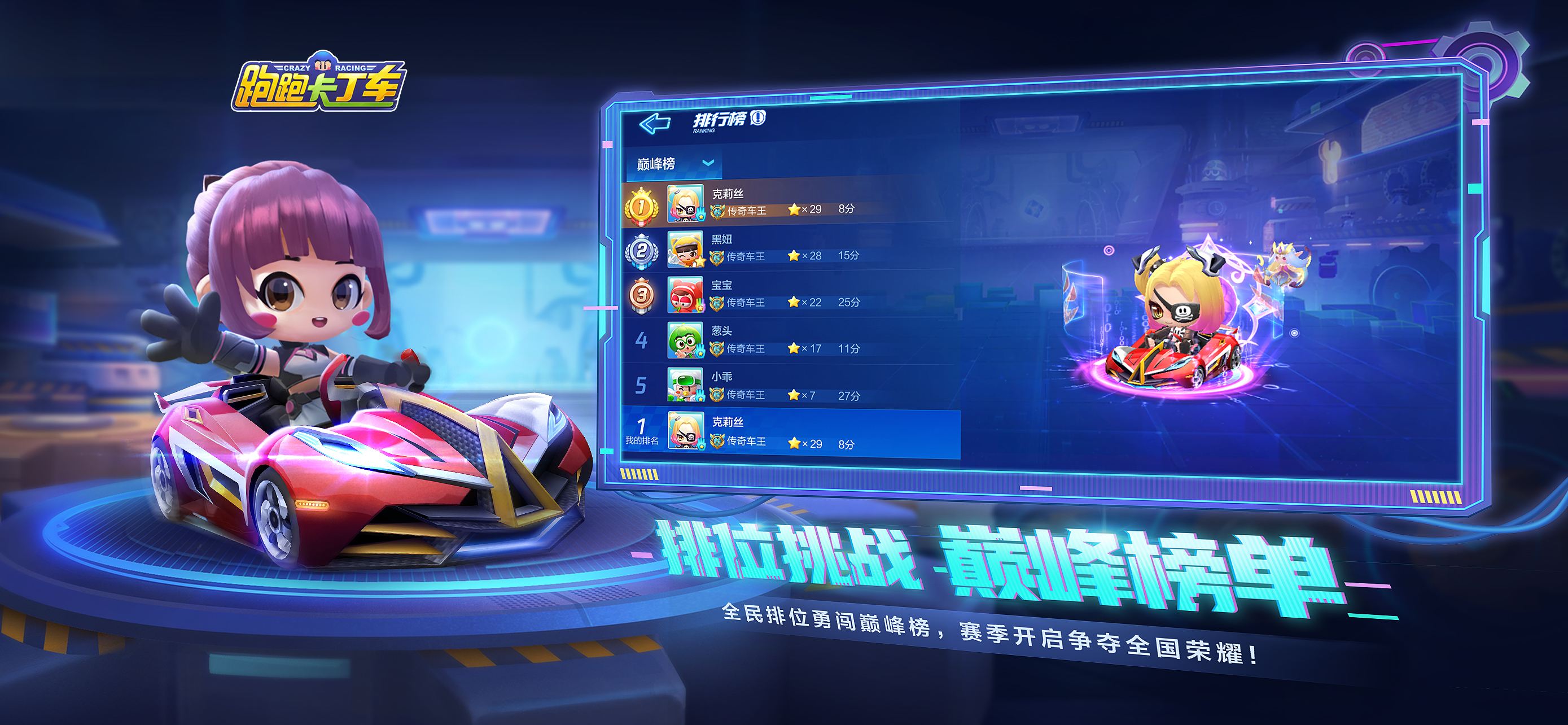 跑跑手游新增巅峰榜啦,能根据车友们的段位来展示全国排名哟~