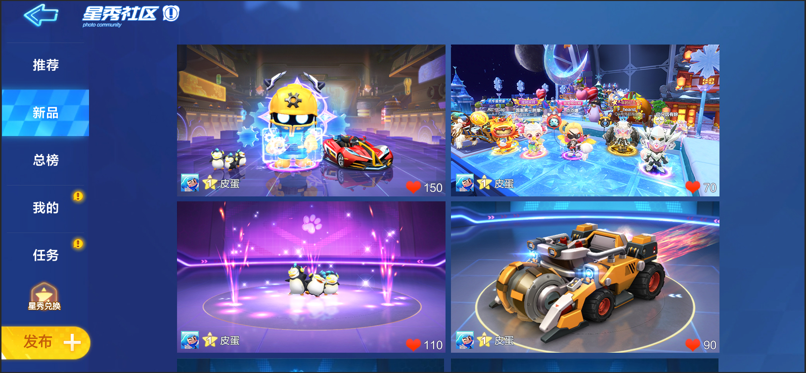 目前可以支持在主界面、小屋、仓库进行拍照后发布作品,车友可以分享自己设计的小屋、涂装的赛车还有各种服饰搭配。发布完成后,可以在我的页签查看自己的作品哟~