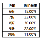 刷新出“工程车”时,各折扣的刷新概率如下: