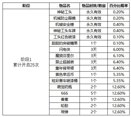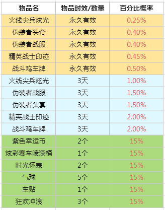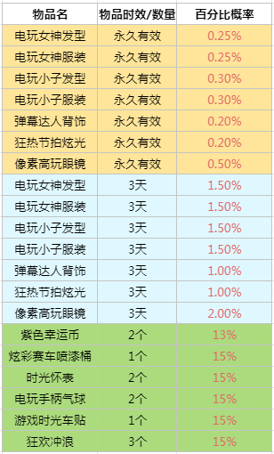 为了给大家带来更好的游戏体验,现将游戏内各类活动以及道具中的核心奖励获得概率进行公示,具体如下: