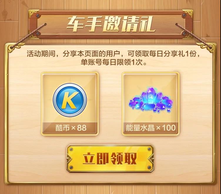 不仅如此,车友们只要每日登录游戏,精彩好礼带回家!每个账号当日限领1次。车友们,走过路过不要错过哟!