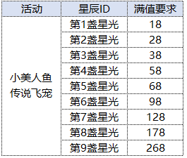 7.本次星光夺宝_小美人鱼活动中,每盏星光要求的满值星辰值如下所示: