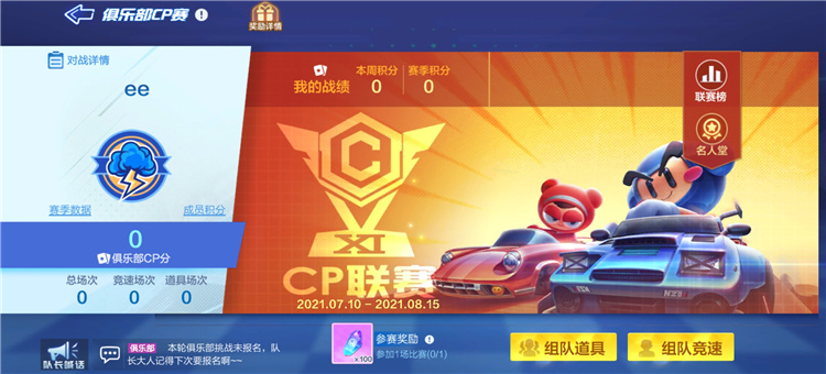 1)在赛季期间,每周六、日的21:00-22:00,车友可进入“组队竞速”及“组队道具”模式下的联赛房间,邀请俱乐部成员或好友组队,随机挑战其它俱乐部车队。