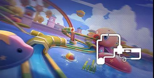 平直宽阔的乐园跑道被一段曲折环转的激流滑道连接而起,连同建设在其上的游乐设施一起,共同组成了这条崭新的水上滑梯。虽然是挑战难度不高的新手向赛道,但唯有基本功扎实的车手,才能顺利通过旋转障碍和摇摆锤的干扰,在激烈的对抗中一马当先。