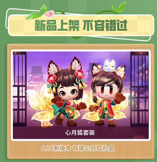 8月24日,游戏内商城上架全新“心月狐”装扮,偏古典的服装设计,加上狐狸耳朵、手套以及六尾背饰的搭配,使得整套装扮可爱又不失优雅。