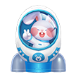揽月背包以太空舱为原型,蓝白色调为主,在里面坐着的正是从月球偷偷跑下来的兔兔,它向背包外比了个耶,突显兔兔的调皮可爱~