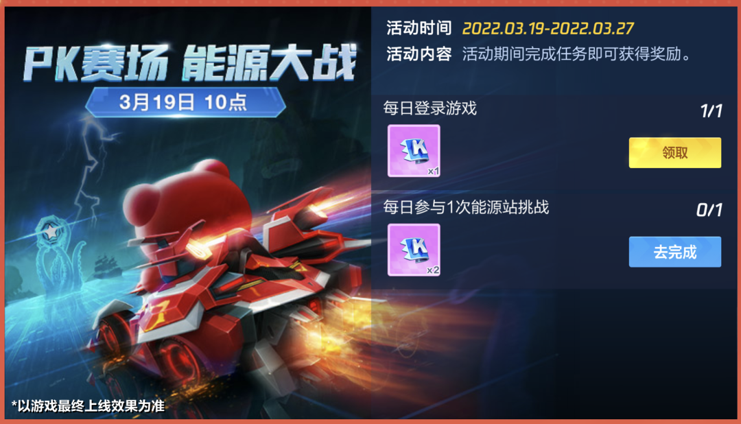 3月19日-3月27日,活动中心将限时开启【能源竞技场】探索神秘海域活动,完成活动任务即可获取能源竞技场挑战券,想要突出重围快速占领顶级能源站的车友们一定不要错过~