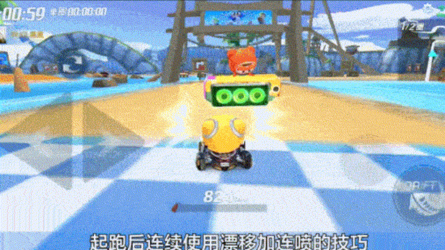 起跑后连续使用漂移+连喷的技巧,在通过第一个弯道后集满第一个氮气。