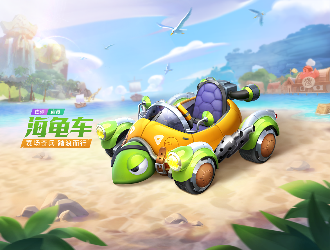 丰厚好礼还不止如此!在同期开放的冠军试炼中,参与活动还有机会获得另一辆全新道具赛车——海龟车!赛场奇兵,踏浪而来!赶快来看看吧!