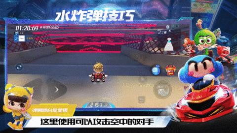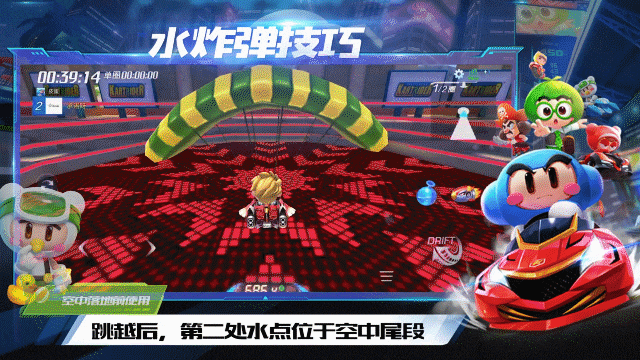 首先第一处水点位置在弹簧跳台前,这里使用水炸弹可以攻击空中的对手,车友们使用水炸弹后记得立刻点击复位键以免自己被攻击哦~