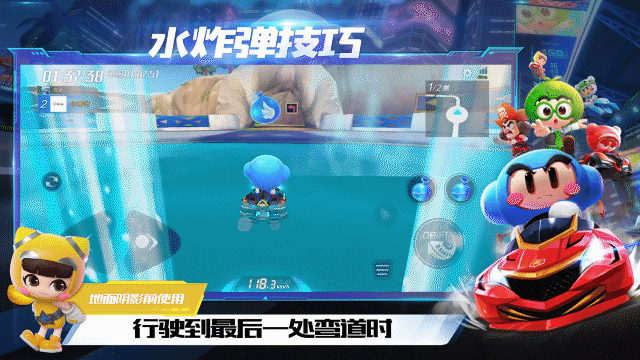 行驶到最后一处弯道时,宝宝要分享的最后一处水点便在弯道入口前,车友们在地面阴影前使用水炸弹,可以攻击到终点前的对手,这可是逆风翻盘的好机会哦,车友们可要把握住机会哦!