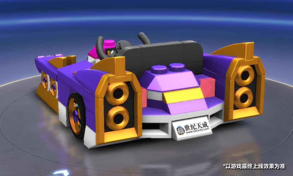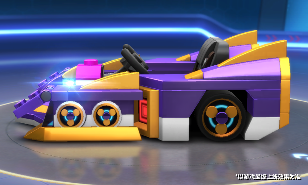 车尾两侧金色的氮气喷射口与上方尾翼连为一体,仿若通往卡通世界的大门,两侧的尾翼会在释放氮气时升起,提升速度的同时给予车手充分的保护。