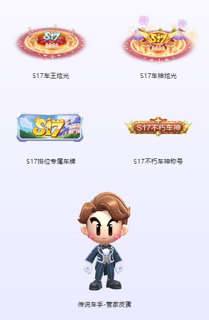 S17排位赛将于3月2日正式开启,车友们将在神秘的路易城堡内开启紧张刺激的城堡探秘~S17排位专属车牌、传说车手-管家皮蛋、S17车王炫光、S17车神炫光、S17不朽车神称号等奖励等你来拿!一起为了荣誉冲刺吧!