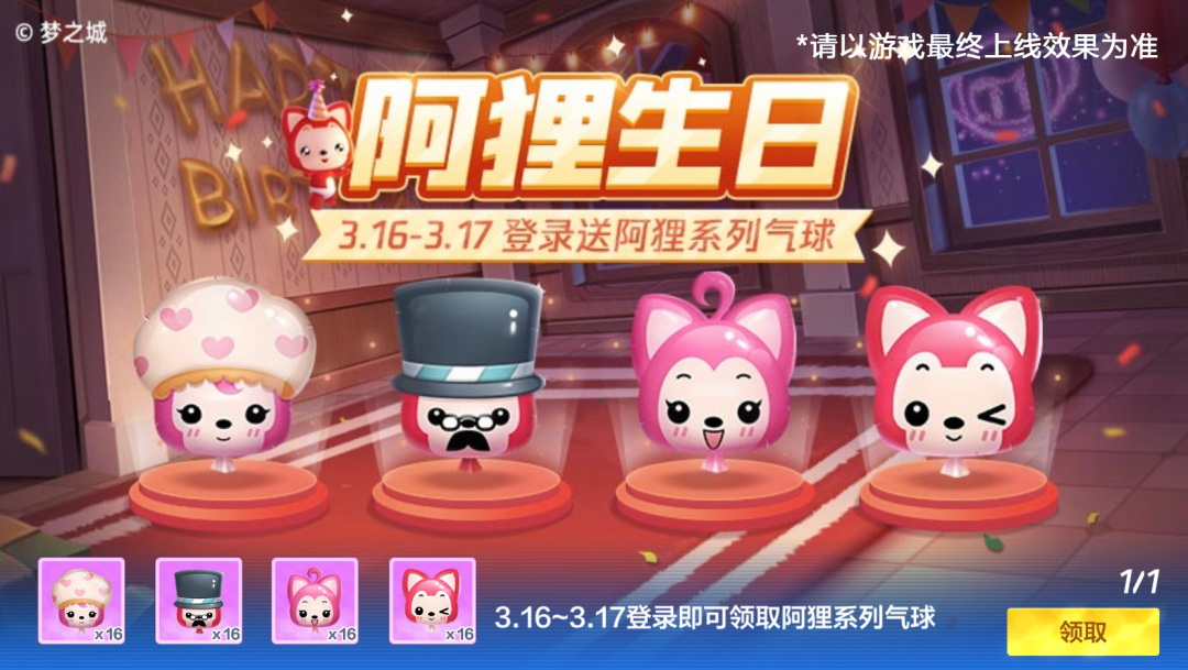 3.16-3.17,登录游戏即可获得阿狸系列气球!