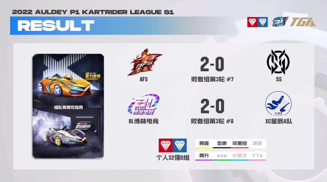 最终P1奥迪双钻杯季后赛成都线下决赛圈的三支队伍已经全部诞生!他们分别是Apr.FC、XC深藏BLUE以及BL博林电竞!三支队伍将于7月8日-7月9日在成都为大家奉上精彩绝伦的冠军争夺战!而车友们千万不要忘记继续参与竞猜活动~成功预测半决赛两场胜利或决赛一场胜利的玩家,将会额外获取TGA限定头像框和称号!最终谁会捧起冠军奖杯?让我们拭目以待~