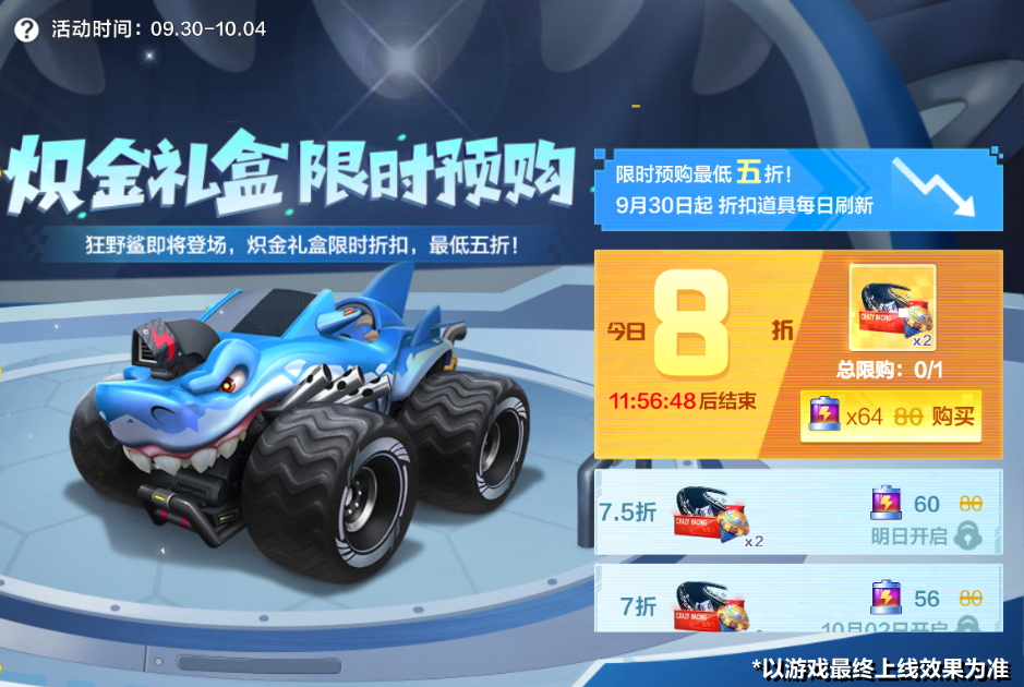 福利站将于9月30日-10月4日开启【炽金礼盒预购】限时活动,活动期间车友们每天都能以折扣价购买炽金礼物盒*2。预购活动共计5天,限时预购最低五折!车友们不要错过哦~